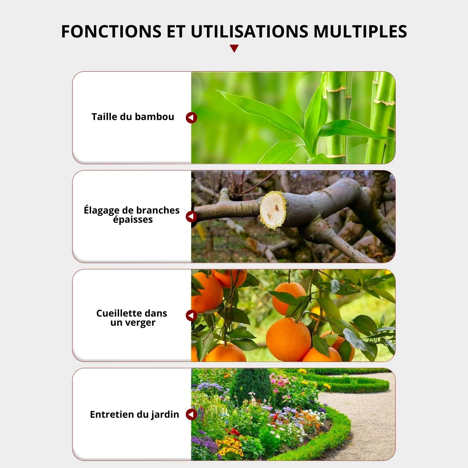 💪 Construcción ultraduradera: Diseño de cuchilla extremadamente afilada y duradera para un corte suave y sin esfuerzo, incluso a través de ramas gruesas.